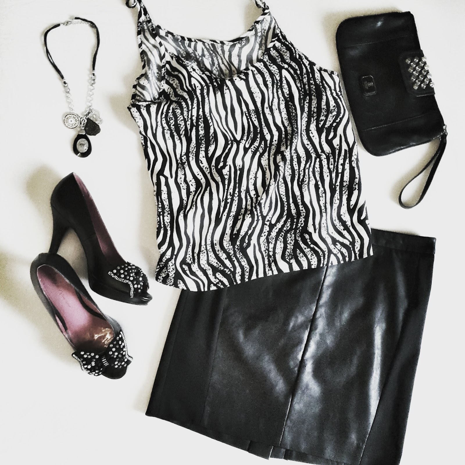 Der Rock ist auch von Vero Moda. Das ist übrigens eine meiner Lieblingsmarken. Mit den Schuhen von Lady Star und der Clutch von Guess, ist das Outfit fast perfekt. Das Top hat durch die schmalen Träger einen relativ weiten Ausschnitt. Das verlangt regelrecht nach einer Kette, einem Blazer oder einer Weste. Hier entschied ich mich für eine Kette von La La Italia, die ich vor einigen Jahren in Venedig gekauft habe.